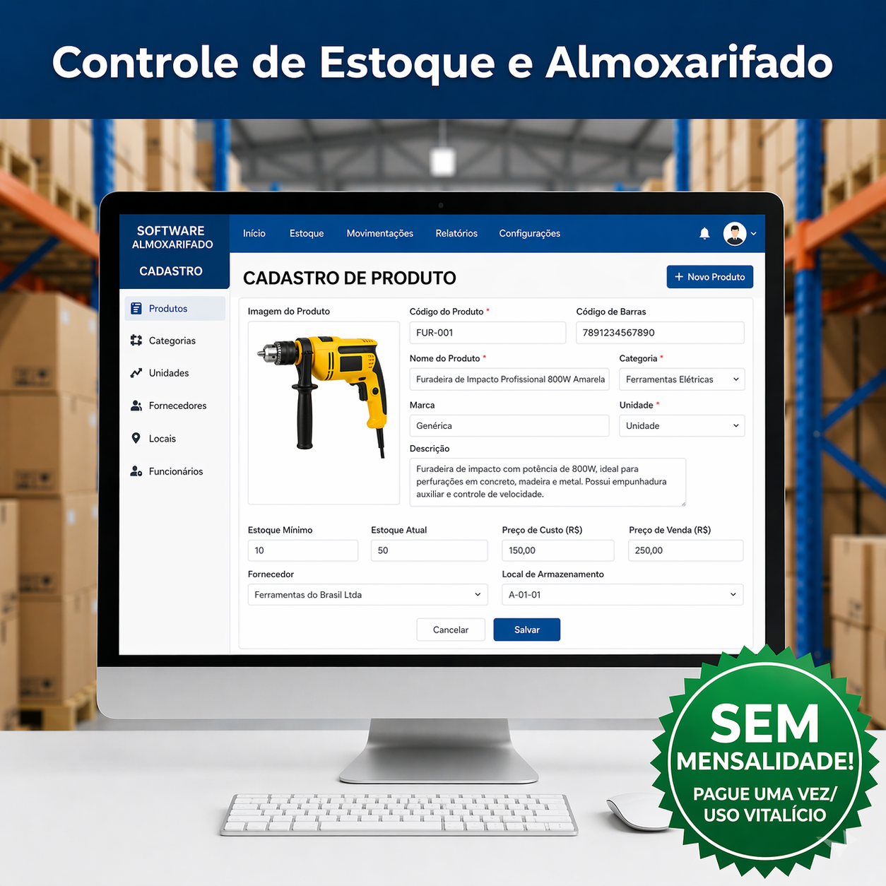 Sistema completo para organizar seu estoque, evitar perdas e ter controle real das entradas e saídas — tudo direto no seu computador.